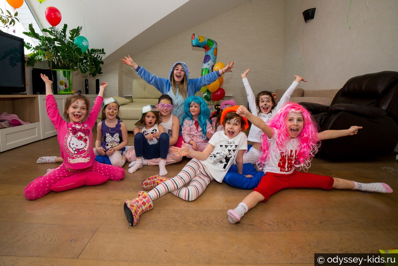 Крутая вечеринка с аквагримом, блестками, танцами.