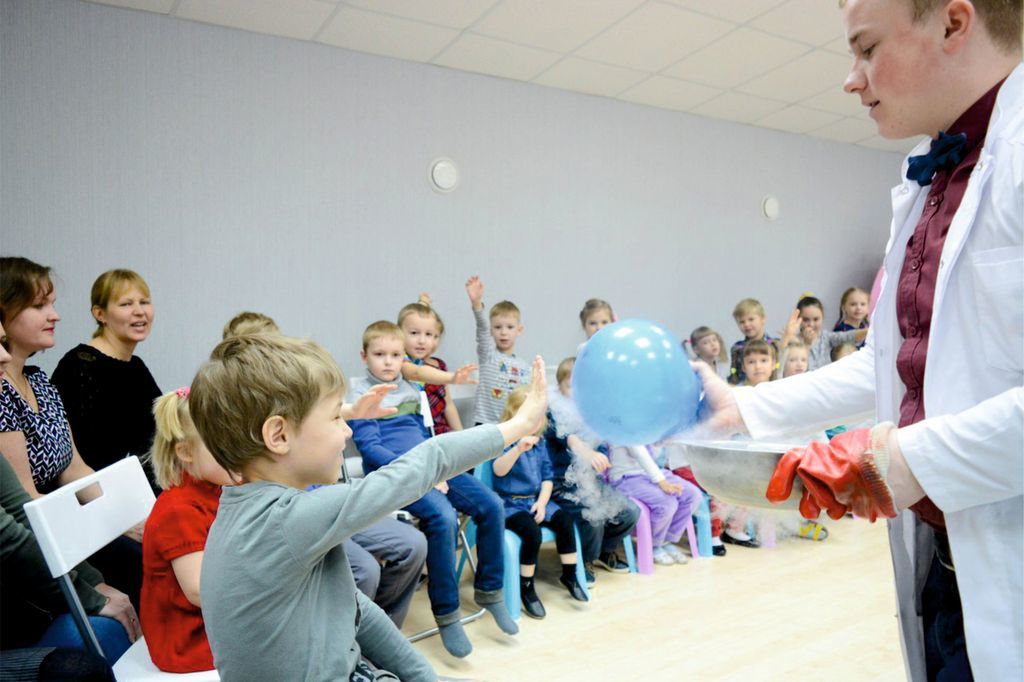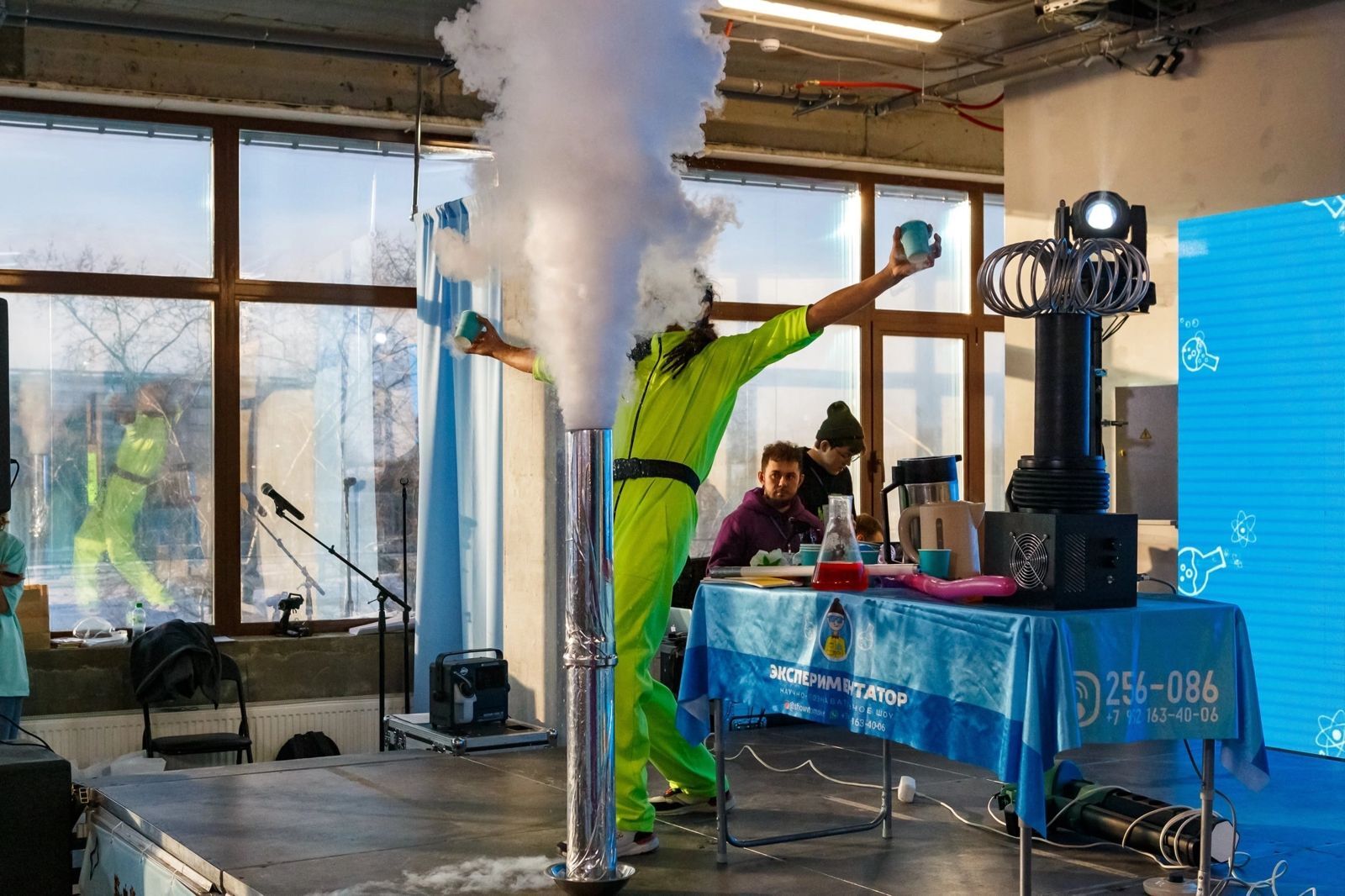 Опытные ведущие, удивляя интереснейшими химическими реакциями
