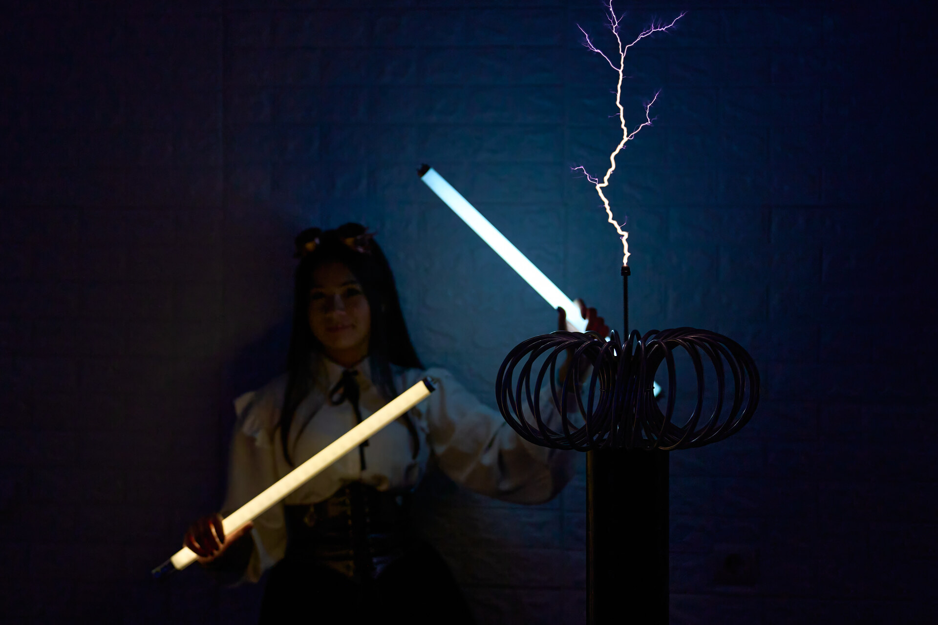 5-7 ярких экспериментов с электричеством. Музыкальные молнии, гигантская катушка Тесла, цветные лампы. Только для смелых ребят.