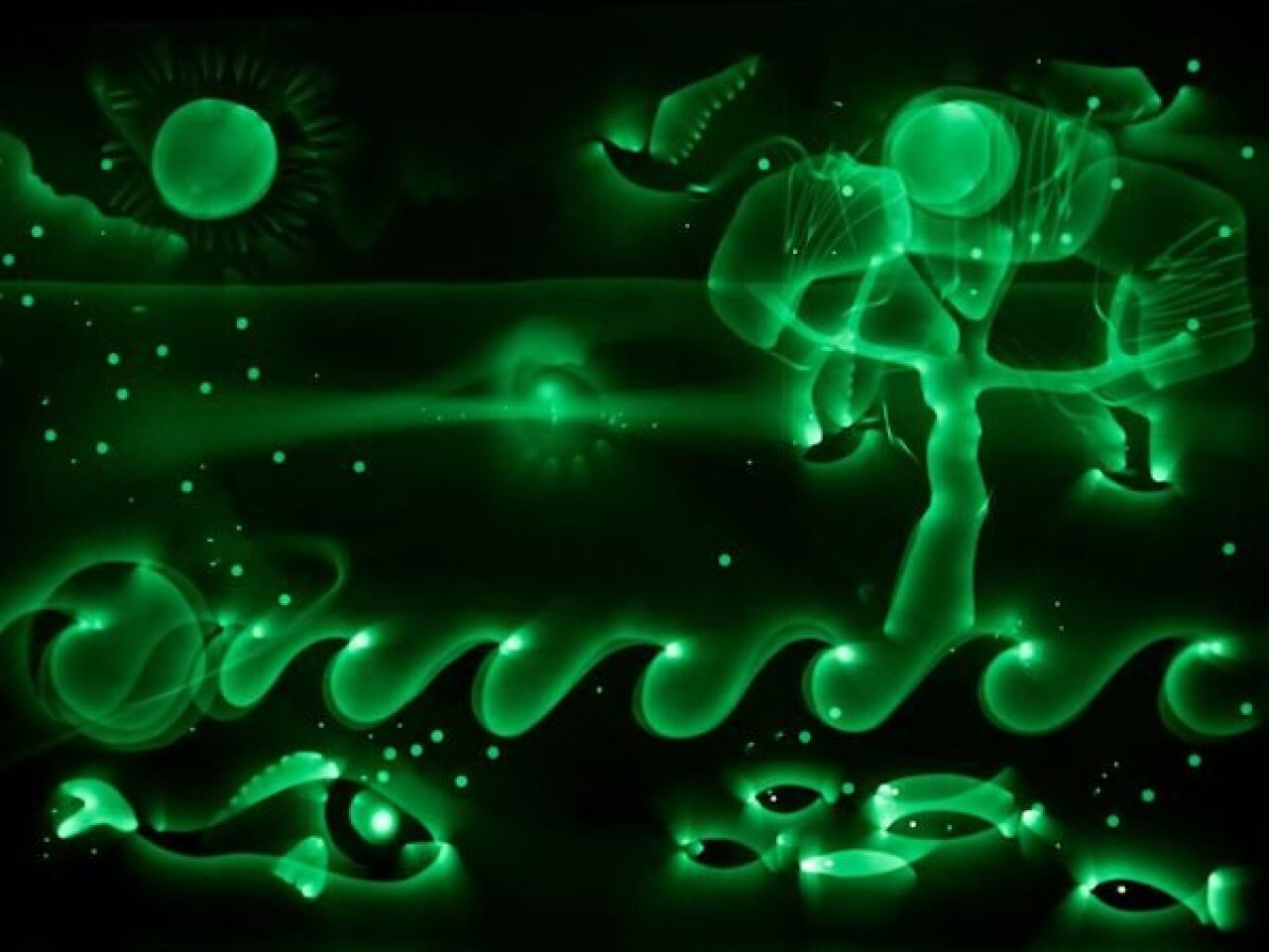 Яркий номер под ультрафиолетовыми лучами с разными трюками.