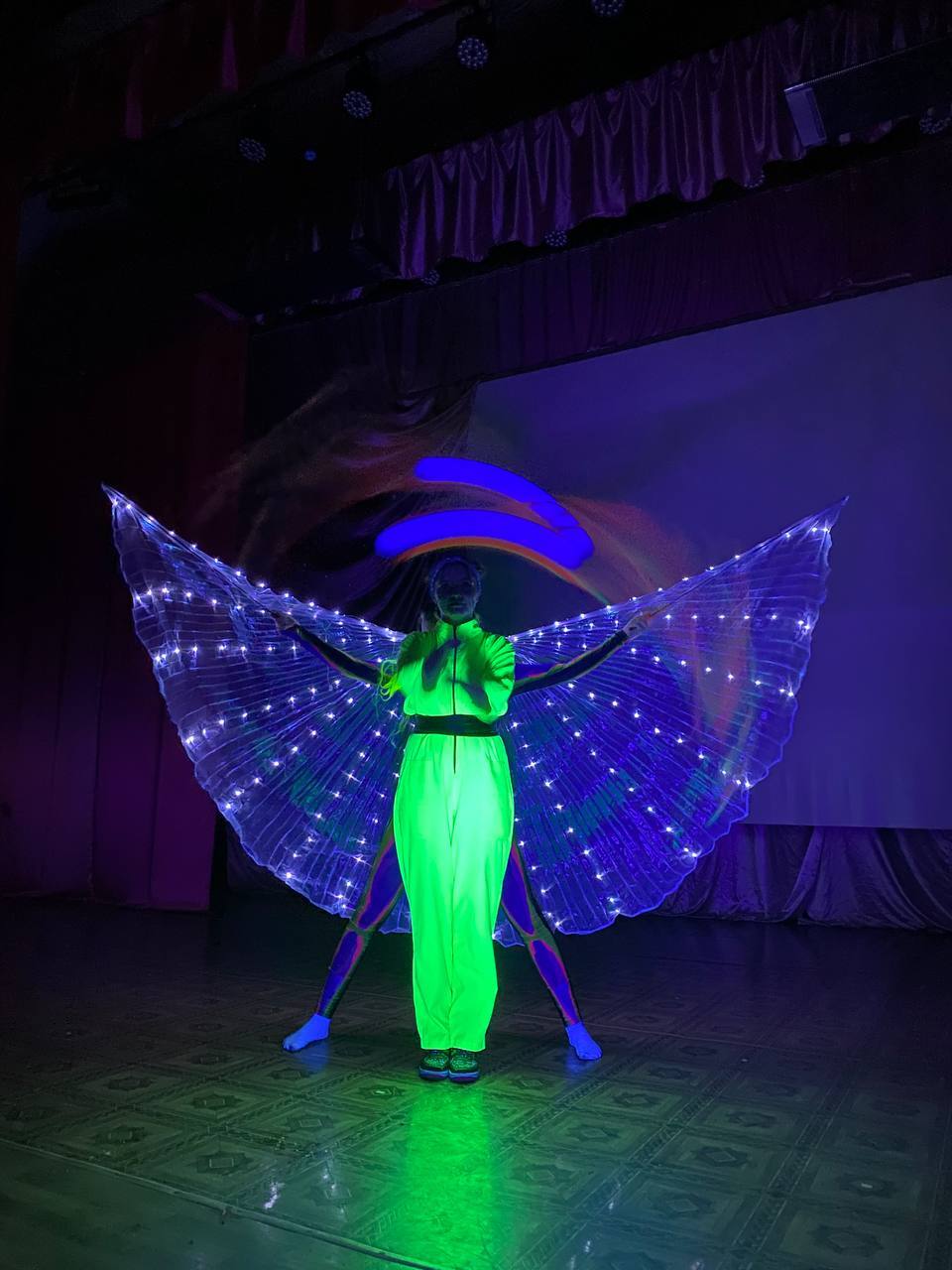 Супер популярная программа. Свет неоновых ламп, светящиеся костюмы, реквизит. Эта дискотека с лентами не оставит равнодушным никого.