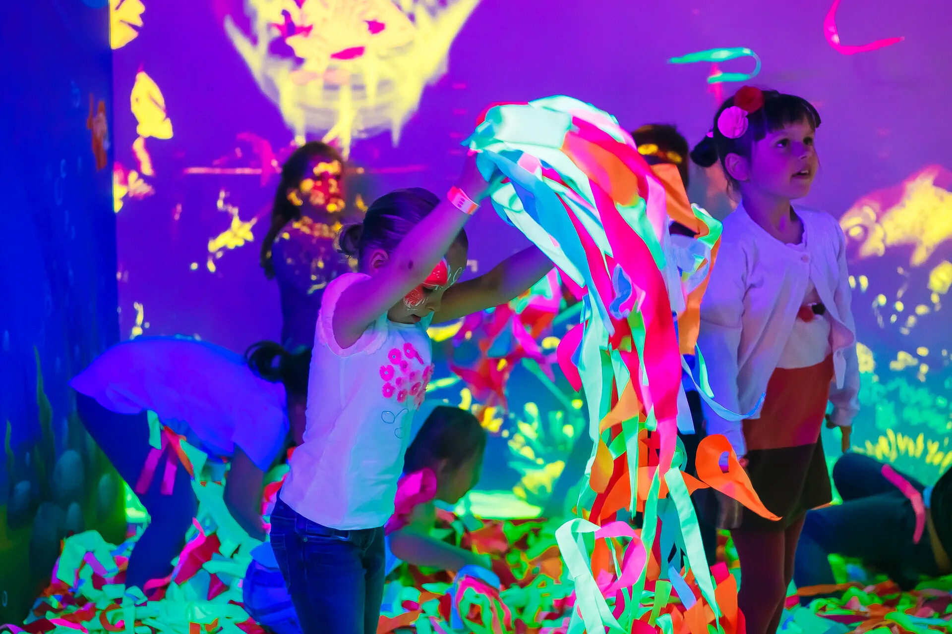 Популярная программа с конкурсами, челленджами, танцевальными баттлами. Вся вечеринка проходит в ультрафиолетовых лучах. С неоновым аквагримом и ленточной дискотекой.