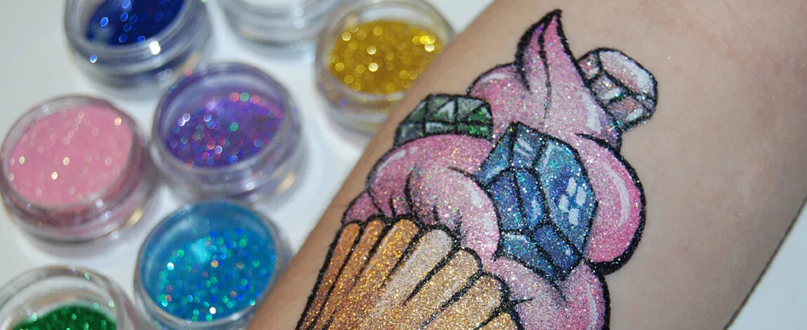 Популярное направление. Блестящие красивые татуировки. Яркая картинка сохранит память о празднике надолго.